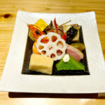 水茄子 鴨葛焼き 針山葵