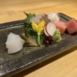 鯛松皮造り 鮪小角 煽烏賊 妻 あしらい 薬味 刺醬油