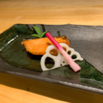 時知らず鮭照り焼き 酢取り蓮根 はじかみ