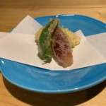 鱧(はも)天婦羅 茗荷 蚕豆 山椒塩